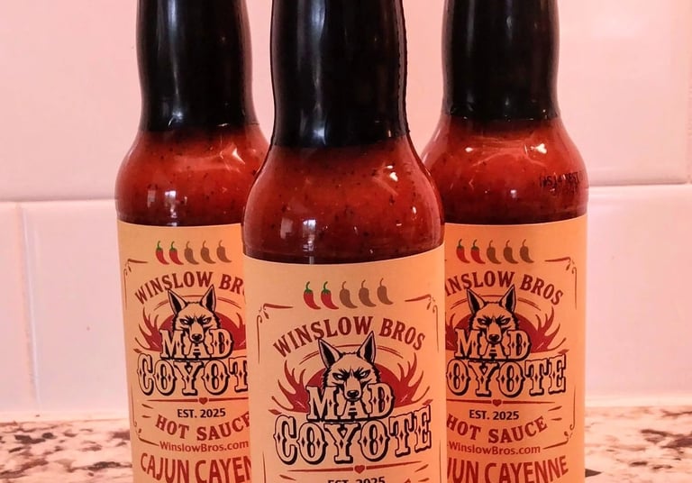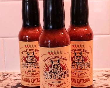 At Winslow Brothers, we believe that every great sauce has a story, and ours is rooted in bold flavors and a little bit of wild spirit. Inspired by the untamed desert heat and the fearless "Mad Coyote," we craft each bottle of Mad Coyote Hot Sauce with passion to create something unforgettable.