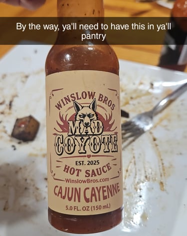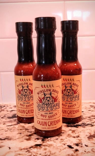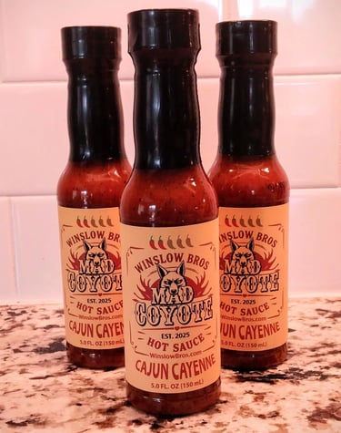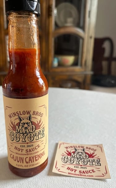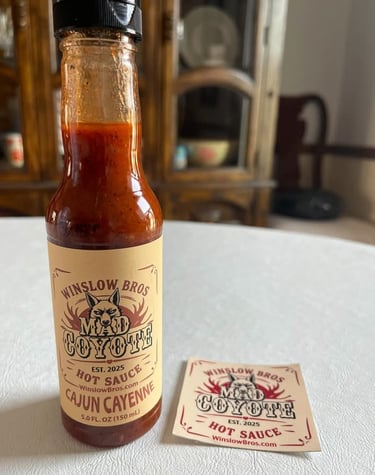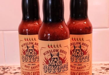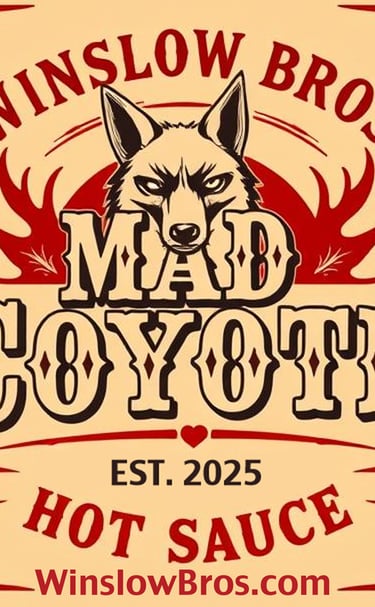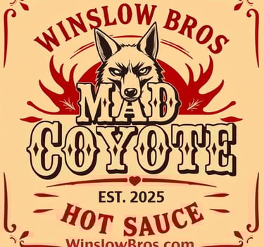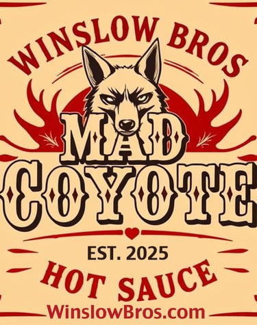 At Winslow Brothers, we believe that every great sauce has a story, and ours is rooted in bold flavors, family tradition, and a little bit of wild spirit. Inspired by the untamed desert heat and the fearless "Mad Coyote," we craft each bottle of Mad Coyote Hot Sauce with love, precision, and a passion for creating something unforgettable.